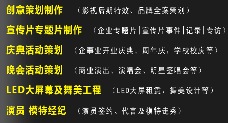 團隊 Team多年的行業(yè)淬練、豐富的制作經(jīng)驗使我們建立起一支專業(yè)、高效、富有創(chuàng)造力的團隊——國家級的導(dǎo)演,為全片制作指點乾坤;睿智的策劃撰稿,妙筆點亮全片靈魂;成熟的執(zhí)行導(dǎo)演,拍攝中統(tǒng)籌畫面效果;老到的攝影師,嫻熟地記錄各式場景;還有新銳的后期編導(dǎo),用靈感為作品增色;充滿熱情的剪輯師、動畫包裝師,讓畫面效果更為精彩繽紛;才華橫溢的音樂制作人,帶來渲染氣勢的合片旋律……不同的工種通力合作,眾志成城,為一個完美影視作品的誕生齊心協(xié)力。